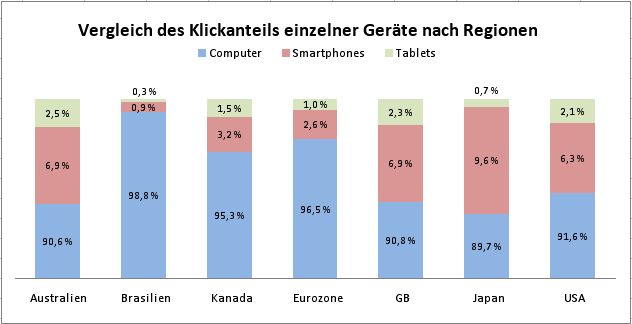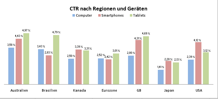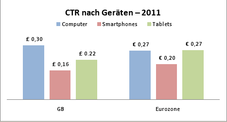 […] Tablet-User sind konsumfreudiger als Smartphone-User und klicken überdurchschnittlich oft auf SEA-Kampagnen. Smartphone-User liegen bezüglich Click-through-Rates und Conversions noch hinter den klassischen PC´s, wenn man die Konversionen im Ladengeschäft und am Telefon außer Acht lässt („Mobiles Suchmaschinen-Marketing in Europa 2012“ ). […]
